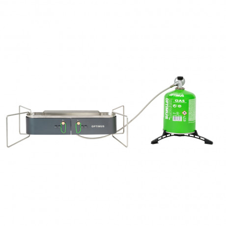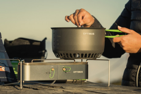 Швейцарській компанії Optimus вдалося випустити один з найлегших і найменш габаритних двоконфорочних пальників на ринку. У виробництві використали матеріали преміум-класу, а потужність полум'я вийшла безпрецедентна для пальників такого рівня – 4600 Вт на кожній конфорці.