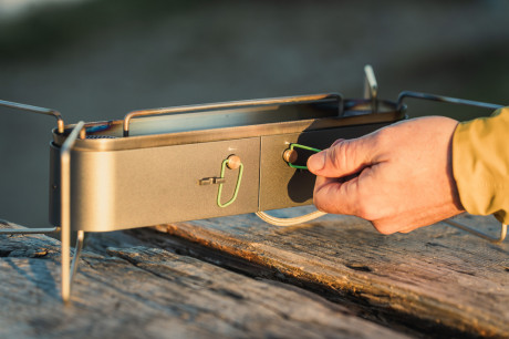 - 5 стійок для посуду — одна зафіксована по центру і 4 складані з боків — дозволяють надійно розмістити на пальнику дві каструлі об'ємом 1–4 літри.