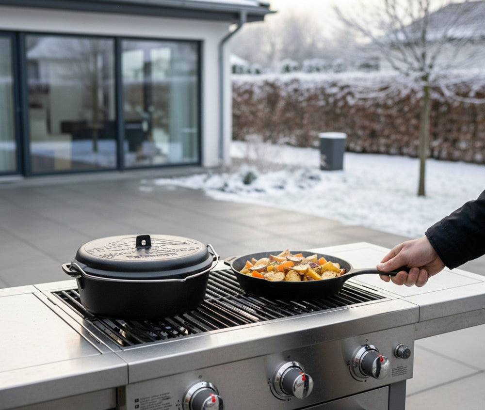 Міцний чавун надійно акумулює тепло та рівномірно розподіляє його — ідеально для ароматних рагу, соковитих тушкованих страв та випічки, наприклад, хліба з хрусткою скоринкою. Піходить для будь-якого джерела тепла: плит, духовок, грилів та багаття.